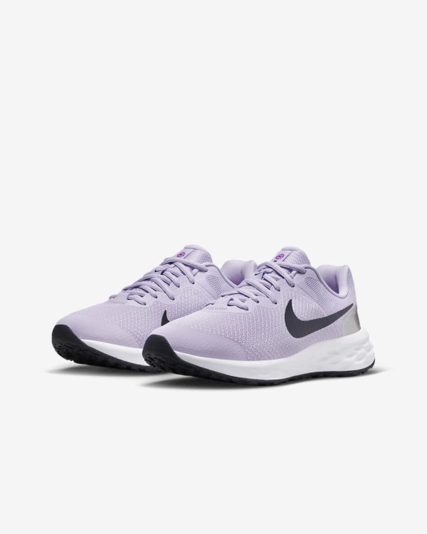Kids Nike Revolution 6 Violet Frost/Metallic Silver/Vivid Purple/Thunder Blue | Nike Running