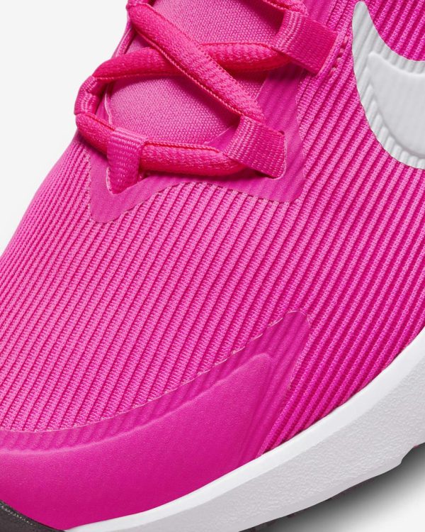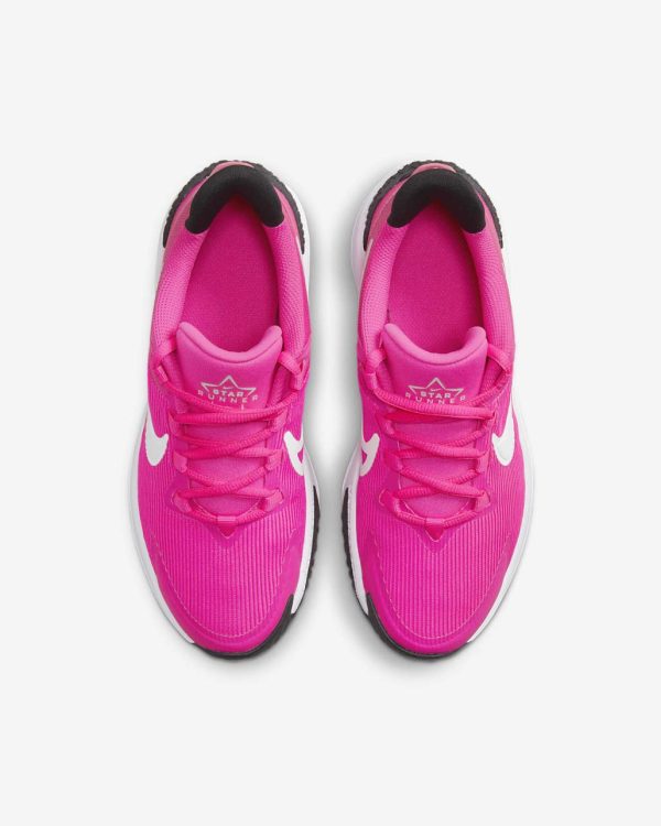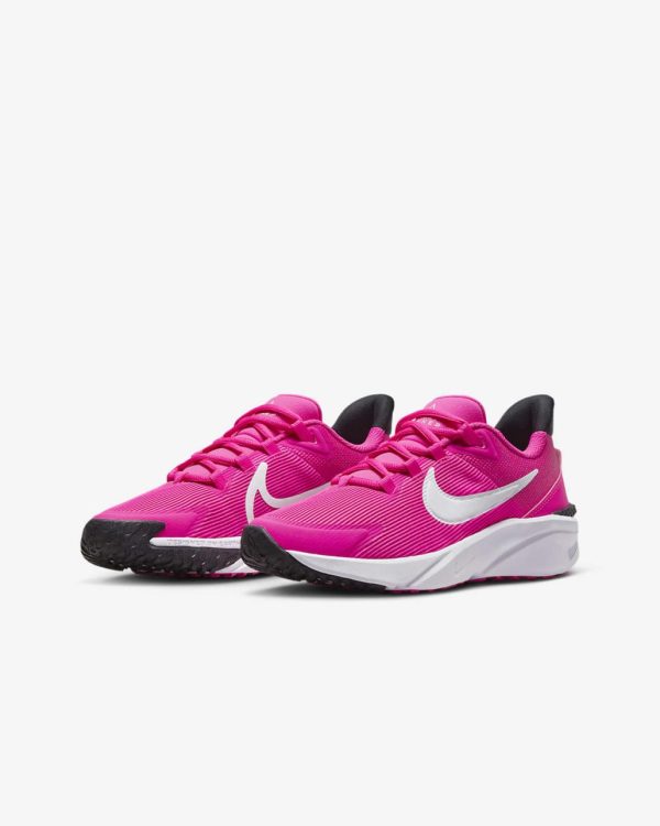 Because ice-cream trucks, games of tag and races to the end of the street and back can only wait for so long, we made it easy for you to slip the Star Runner on and get going. Soft cushioning in the midsole provides a comfortable, springy feel so every skip, hop and stride you take is one closer to the finish line. The tread grabs at pavement, grass and gravel to give you extra grip while a rubber-wrapped toe toughens up the construction so you can go further in the same pair of Star Runners.