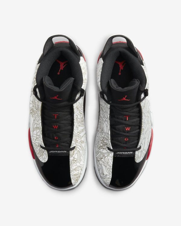 Laser-etched details along the sides visualize the history of the Air Jordan franchise.