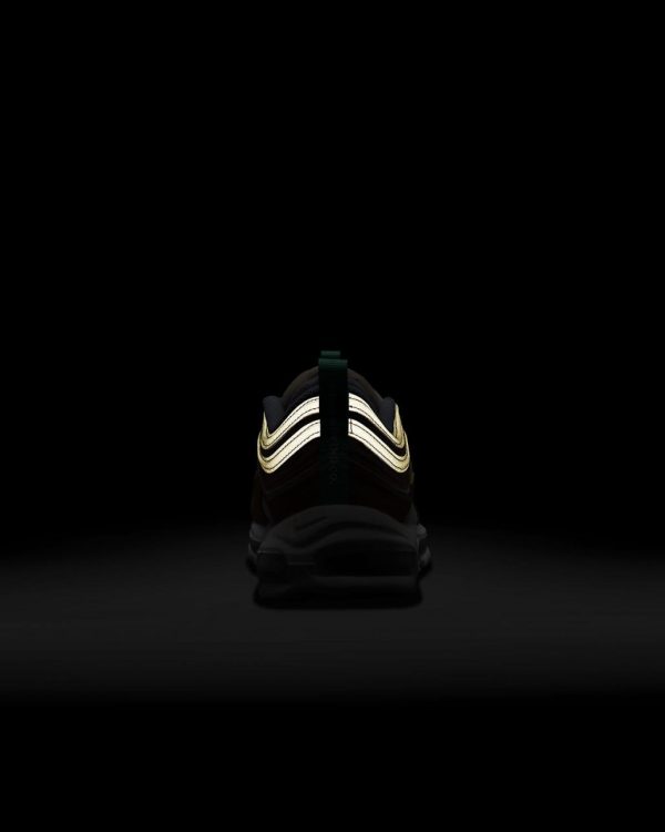 Find out what moves you in the Nike Air Max 97. Our iconic design, originally inspired by Japanese bullet trains, now tells a playful story rooted to our history of moving people. The textile upper, hemp accents and snail-trail stitching nod to our fictional "NIKE MOVING CO." And to top it off on the bottom, visible Nike Air cushioning lets you ride in first-class comfort. So, where next?