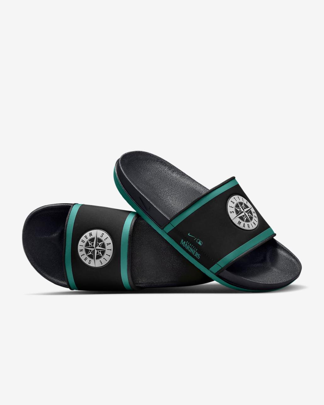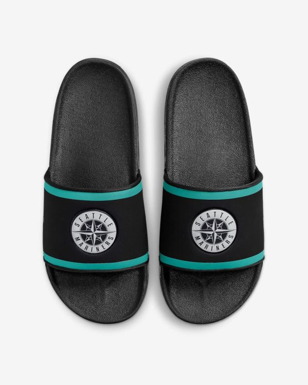 Cheer your team to victory in comfort with the Nike Offcourt (MLB Seattle Mariners) Slide. A cushy synthetic leather strap …
