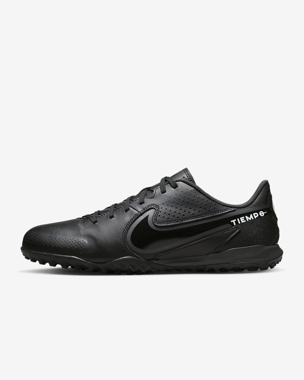 1 of our lightest Tiempos to date, the Nike Tiempo Legend 9 Academy TF lets you go on the offensive with a low-profile design that's reinvented for attackers. The upper features raised areas throughout the strike zone for precise dribbling, passing and shooting, while a rubber sole helps supercharge traction on turf.